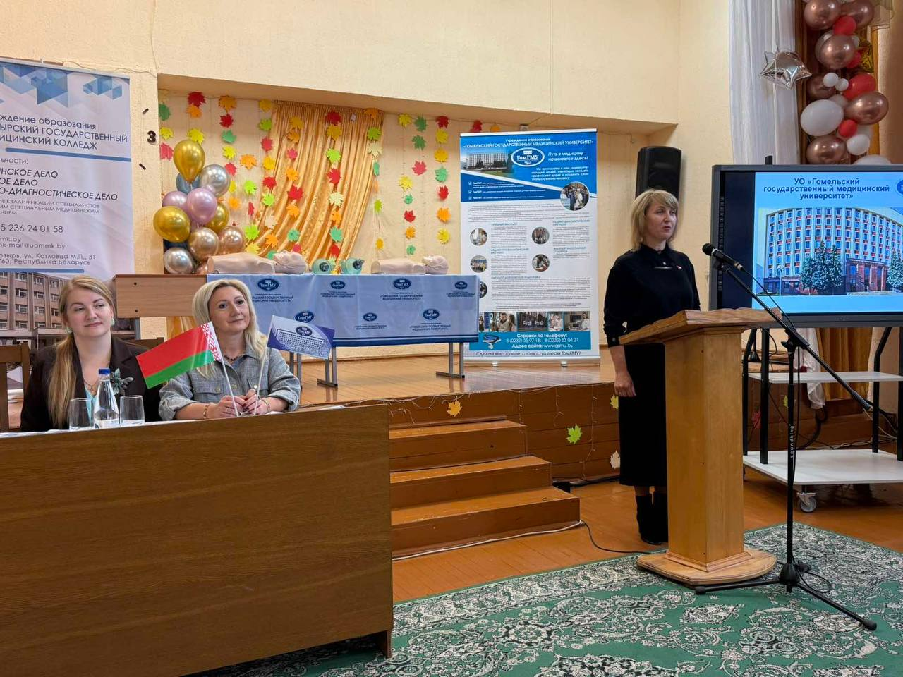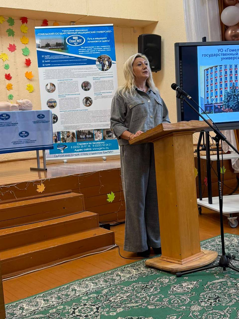 Сегодня на базе Октябрьской районной гимназии для учащихся 9-11 классов учреждений образования Октябрьского района прошло профориентационное мероприятие. Перед ребятами выступили декан факультета довузовской подготовки Гомельского государственного медицинского университета Наталья Тимошенко, заместитель декана медико-профилактического факультета Марина Чайковская и представители Гомельского и Мозырского медицинских колледжей. Они рассказали о преимуществах получения медицинского образования, особенностях поступления в медвузы и колледжи, передовых методах, применяемых в образовательном процессе. Особое внимание было обращено на поступление на условиях целевой подготовки.
