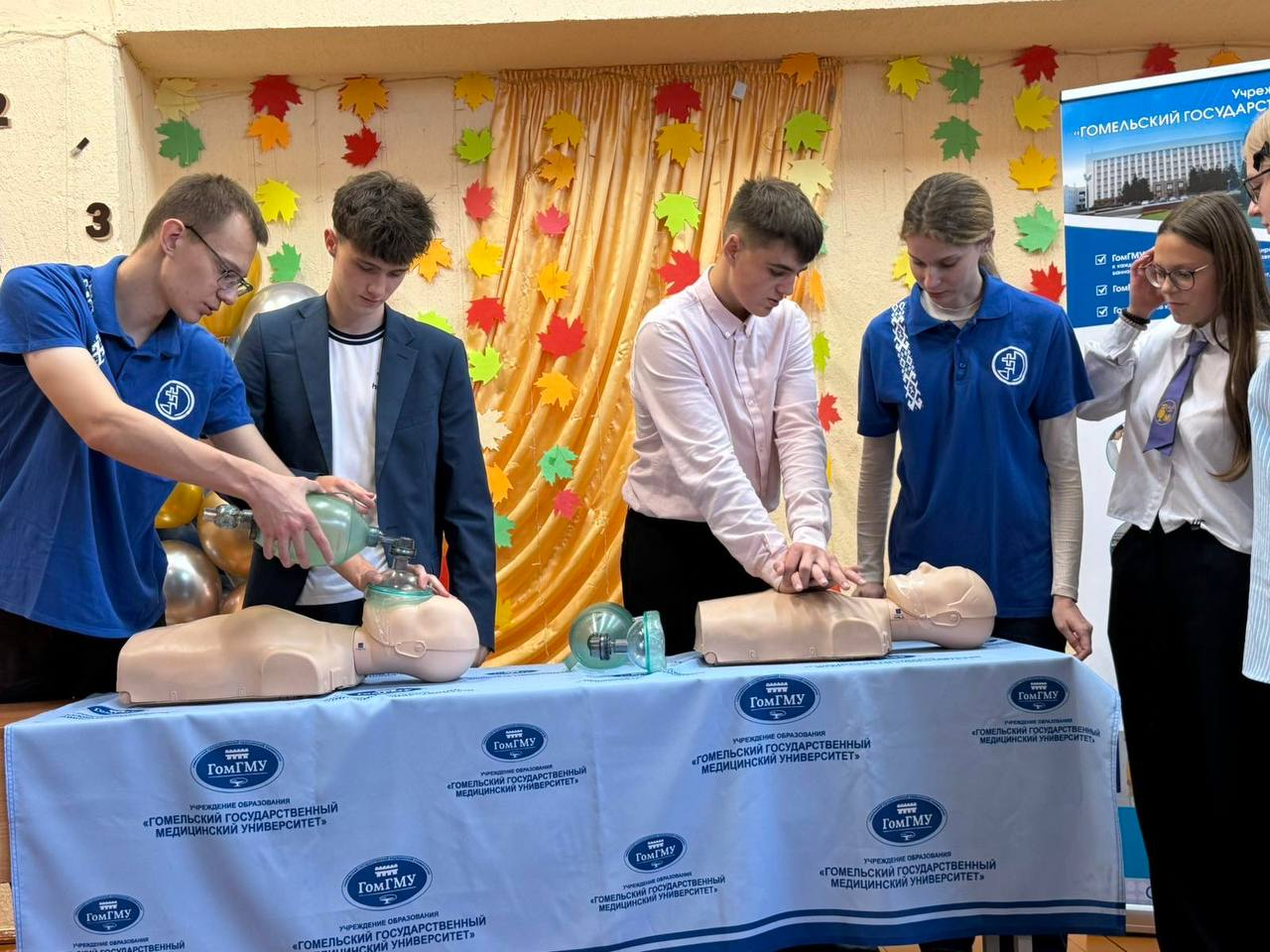 В рамках встречи учащиеся смогли получить навыки проведения базовой сердечно-легочной реанимации.Сегодня на базе Октябрьской районной гимназии для учащихся 9-11 классов учреждений образования Октябрьского района прошло профориентационное мероприятие. Перед ребятами выступили декан факультета довузовской подготовки Гомельского государственного медицинского университета Наталья Тимошенко, заместитель декана медико-профилактического факультета Марина Чайковская и представители Гомельского и Мозырского медицинских колледжей.